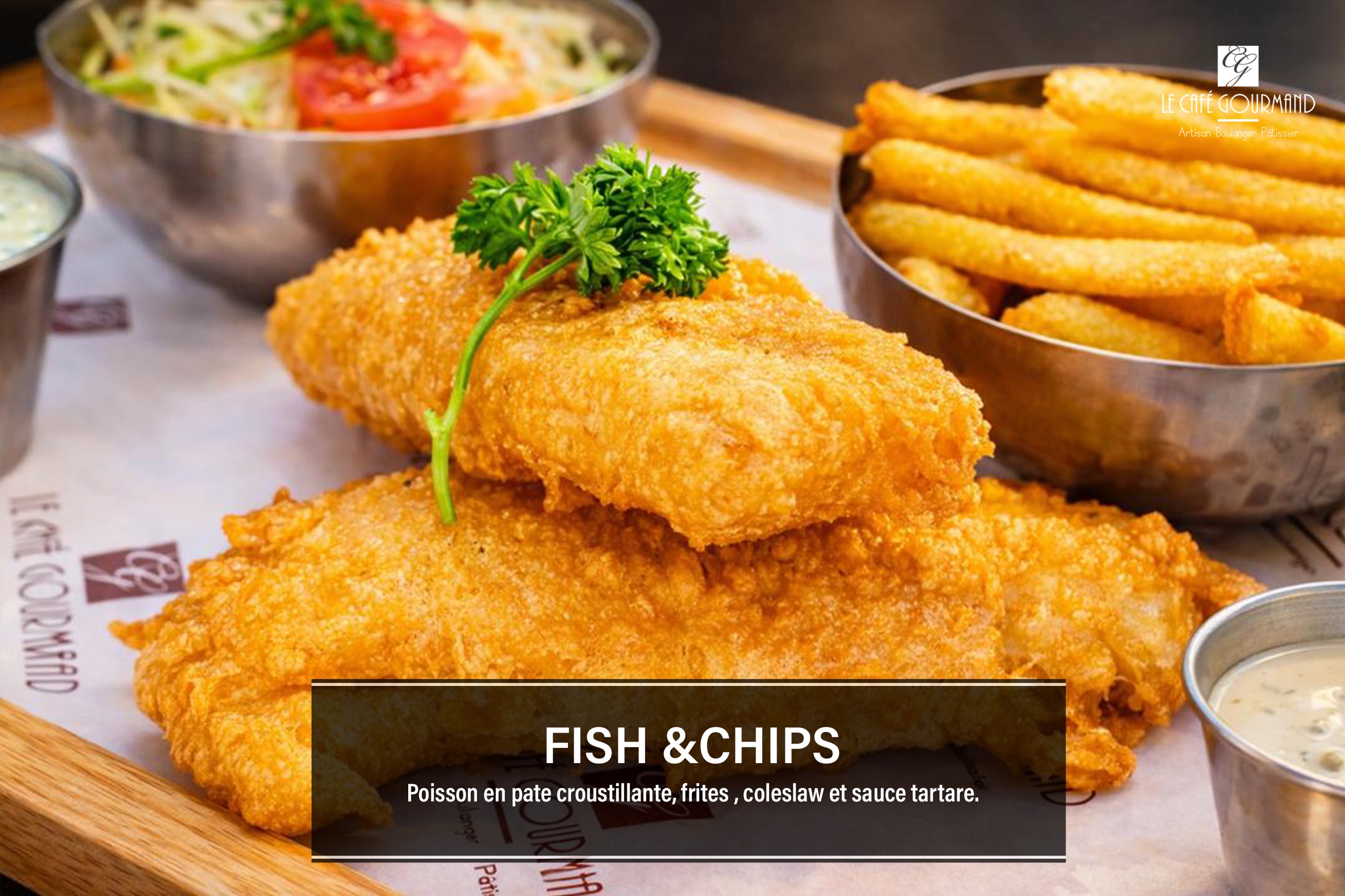 Fish & chipsPoisson en pâte croustillante, frites, colesaw et sauce tartare |