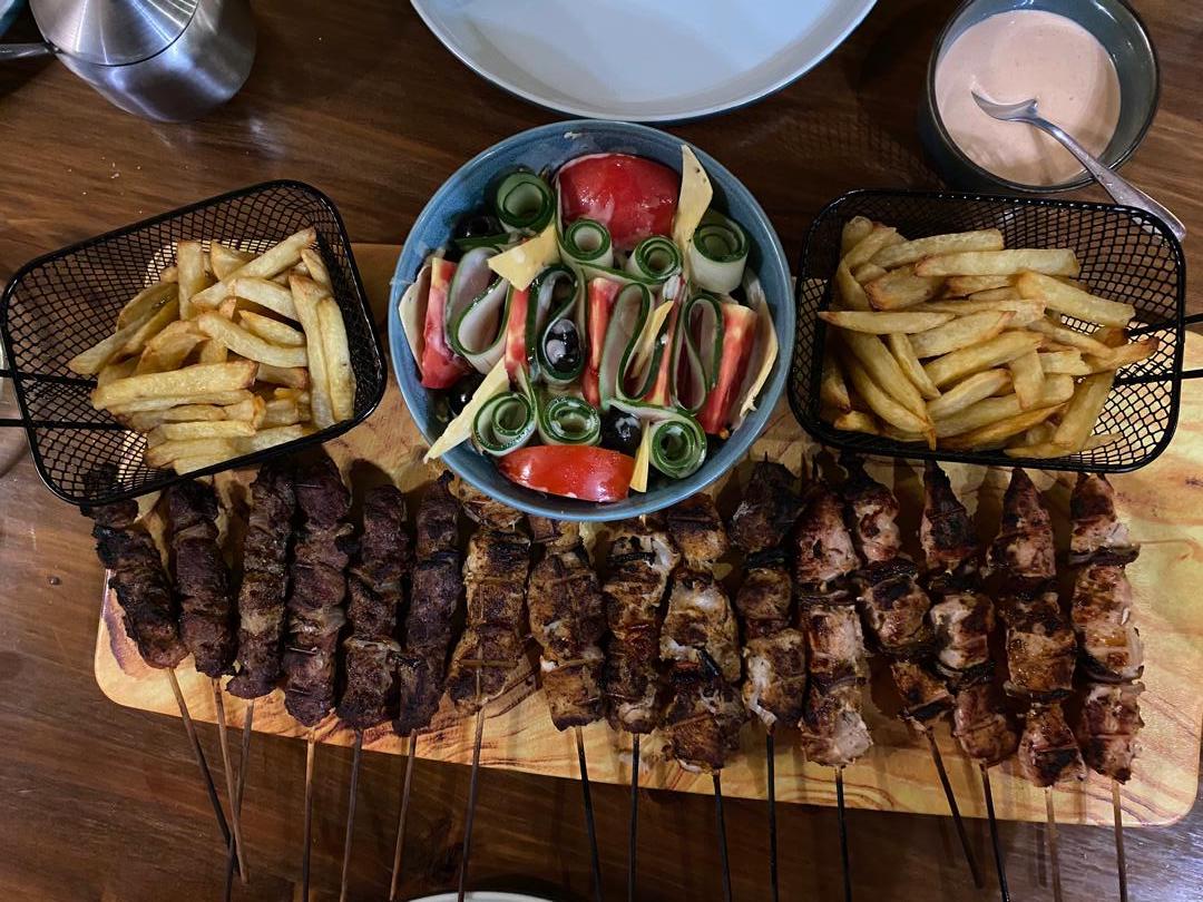 Signature gill boardBoeuf mouton poisson poulet pour 5 personnes: 16 mini brochettes avec 3 accompagnements pour 3 personnes : 8 mini brochettes avec 2 accompagnements |
